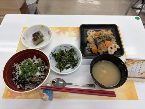 HOME お知らせ一覧 行事食 秋のお楽しみ御膳 2025.11.18 お知らせ 行事食 秋のお楽しみ御膳 紅葉が一段と色を増す季節となりました。本日はさっぱり食べられる黒酢を使用した和風御膳を提供いたしました。 旬の根菜を使用し身体温まる昼食となりました。 来月はクリスマスメニューを考案中です。 献立 ・炊き込みご飯 ・豚汁 ・鶏と野菜の黒酢あん ・ほうれん草の胡麻和え ・抹茶水ようかん お知らせ一覧へ 相談窓口 入院案内